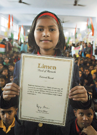 现年9岁的韦玛(Sushma Verma)目前在北方省首府勒克瑙的圣米拉国际学院就读,她2007年参加大学入学考试时,只有7岁零3个月又28天。