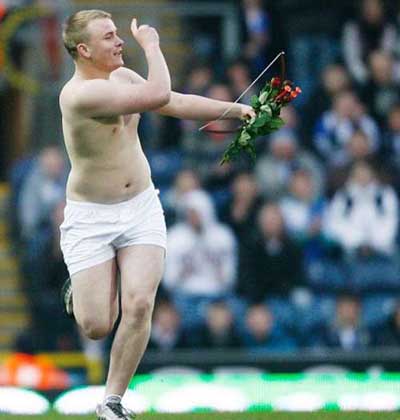 打扮为成人版爱神,在英超球队布莱克本队的主场上射出红玫瑰,似乎是一个好主意。但这个在情人节做出的举动给二十岁的英军士兵米勒带来意想不到的反效果。