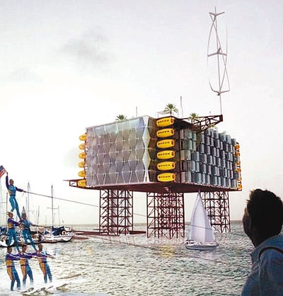 中新网4月17日电 美国一群建筑师正计划将墨西哥湾一个停产的钻井平台,改建成一间具环保概念的高级海上酒店(见图)。根据设计方案,酒店将设有300间客房,并附设赌场、人工沙滩、日光浴等娱乐设施,并提供滑浪、潜水等水上活动。