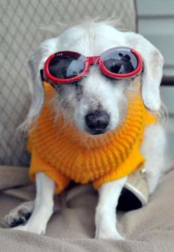 据香港《大公报》报道称,腊肠犬香奈尔身穿黄色毛衣、戴着红框太阳眼镜。它的主人丹尼斯替它接受了这一殊荣。香奈尔曾是纽约的一只救援犬。