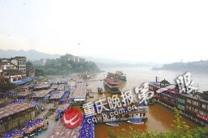 连续两天强降雨之后,嘉陵江主城段出现了汛期以来第一次大幅涨水,且势头迅猛。沙坪坝水厂位于嘉陵江上的取水趸船,连续进行了两次拆接管,以保证用水安全。