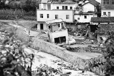 13日凌晨3点左右,下着大雨,王元正和两个同伴一起在炉房沟大坝旁烧水、杀猪。“河水突然涌起三四丈高了。”王元正一边比划,一边说,“我也顾不得多想,拔腿就往镇中心跑。刚跑到文化站背后,洪水就过来了,也就几分钟的事情。”