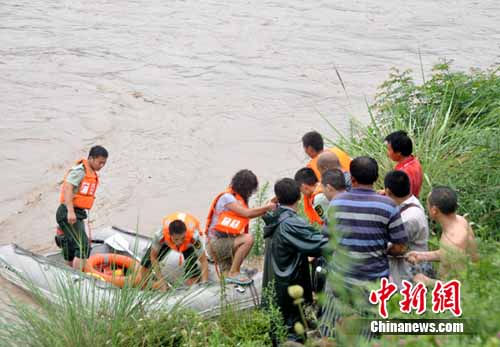 消防官兵利用冲锋舟从上游200米的地方下水,驶向被困人员的地方,由于水流湍急,几次前行都被洪水冲走。经过几个回合的反复,终于成功将被困孤岛的男女成功救出。(完)