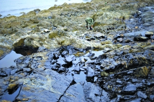 工作人员不断向海里抛清油毡,一张清油毡可以吸收约70-80斤的石油。清污人员使用的工具主要为清油毡、消油剂和围油栏。尽管清油毡和消油剂的数量非常大,但与大面积受污染海域相比,还只是一小部分。