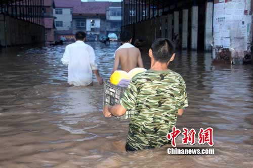 图文:直击山洪冲进湖北当阳城 部分街道被淹(2)