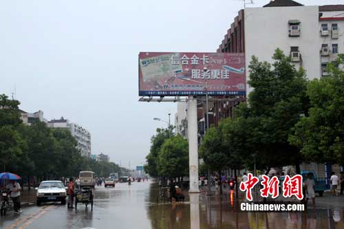 当阳遭受特大暴雨袭击 城区部分街道浸水