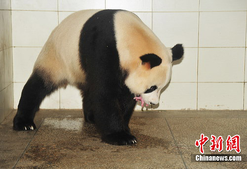 目前尚不清楚幼仔的性别,从现场目测来看,宝宝身体非常健壮。据悉,目前,菊笑的胎盘还未排出,不排除产双胞胎的可能。(完)
