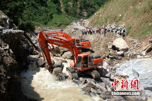 经过全力抢险施工,擂禹路全线共挖方71000立方米,填方12000多立方米,实施爆破10余次,疏浚河道20余处。上午11时,北川通往关内的生命线再次被打通。(完)