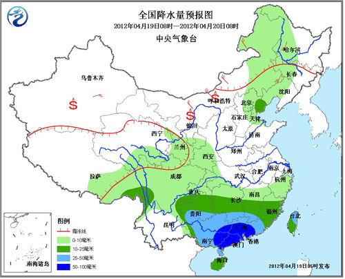 参与互动(0)未来三天我国江南华南有强降雨并伴有强对流天气。4月19~20日,江南东部和南部、华南等地将有一次明显降雨天气过程,其中,湖南南部、江西东部和南部、浙江南部、福建、广西大部、广东、海南等地有大雨或暴雨,过程降雨量有60~150毫米,并伴有短时强降水、雷雨大风或冰雹等强对流天气。北方地区有弱降水。19~21日,华北大部有阵性降雨天气;20~21日黄淮北部和东部有小雨,山东半岛局地有中到大雨。19日夜间~21日,东北春播区的西部和南部地区有小雨。西北部分地区有沙尘。19日,新疆南疆盆地、内蒙古中西部等地有扬沙或浮尘,局地有沙尘暴。