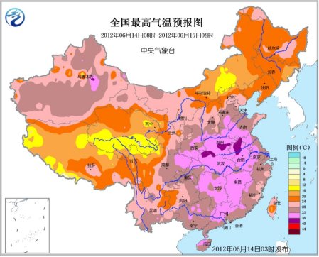 14日~15日,内蒙古中东部、东北、黄淮等地多阵性降水天气,东北地区中南部的部分地区有大到暴雨,上述地区局地还伴有短时雷雨大风或冰雹等强对流天气,可能对黄淮等地的夏收产生不利影响。受东北冷涡影响,未来三天,内蒙古中东部、东北、华北北部等地气温将比常年同期偏低2~3℃。