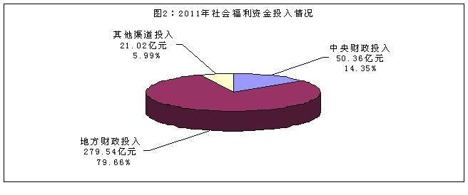 从资金来源看,2011年,中央财政、地方财政和其他渠道分别投入50.36亿元、279.54亿元和21.02亿元,分别占14.35%、79.66%和5.99%(见图2)。