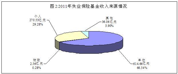 2011年基金收入中,来源于单位、个人、财政和其他的收入分别为614.66亿元、270.53亿元、2.56亿元和36.06亿元,分别占66.54%、29.28%、0.28%和3.90%(见图2)。
