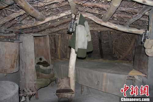 地窝子是创业初期至60年代末农一师主要的职工住房,屋顶铺以红柳、芦苇、杂草混合的草泥封顶,在遇到暴雨时就变成了小水塘,早上醒来发现鞋子都漂在水面上。戚亚平 摄
