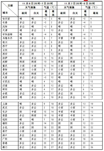 预计7日至8日,弱冷空气影响北方地区;8日至11日,受新一股较强冷空气影响,北方大部地区降温4~8℃,局地可达10~12℃;北方大部并伴有4~6级偏北风,新疆山口风力可达8~9级。同时,7日至8日,新疆北部有小到中雪或雨夹雪,其中,塔城、阿勒泰和天山地区西部等地的部分地区有大到暴雪。