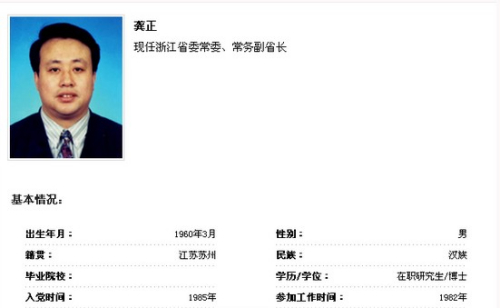 浙江公布省政府领导分工 龚正任常务副省长(2)