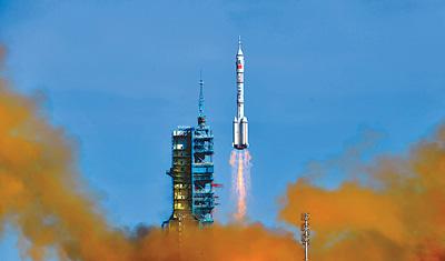 6月11日17时38分,长征运载火箭托举着神舟十号飞船在酒泉卫星发射中心发射升空。