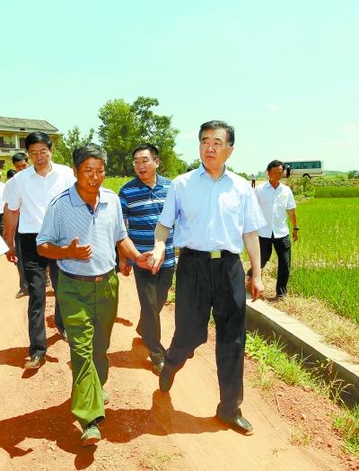 汪洋赴湖南指导抗旱救灾 到田间地头察看旱情(图)