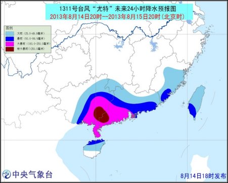 截至今天下午,“尤特”带来的降雨和大风已经非常明显。昨天08时至今天15时,福建南部、广东沿海、海南中北部等地均出现大于50毫米的降雨,其中海南儋州、琼中、文昌等地出现160~200毫米降雨。风雨同行,广东中西部沿海、海南北部出现9~11级大风,局地12~14级。