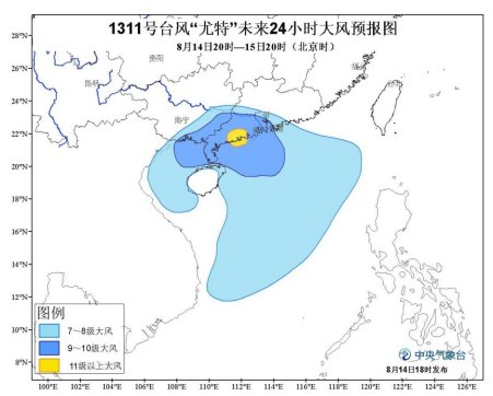 虽然登陆后“尤特”会迅速减弱,但未来24小时,南海西北部、琼州海峡、北部湾、广东西南部及广东中西部沿海、海南北部和东部及其沿海、广西东南部及其沿海仍将出现7~9级大风,部分海域和地区风力可达10~11级。中央气象台提醒上述地区民众尽量减少外出,注意自身安全。