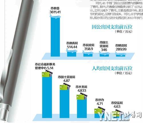 同时,41个部门因公出国经费与预算相比,压缩和减少了费用。其中,市教委压缩最多达到了1275.2万元。市教委表示,之所以减少了费用,主要是落实中央、北京市的有关厉行节约的规定,压缩行政成本。同时,由于学校教育教学工作安排,部分项目的出访计划推迟到2013年执行。