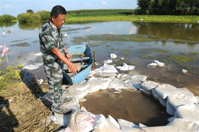 孙吴段堤坝被泡一个月 内外水位落差3.6米(图)