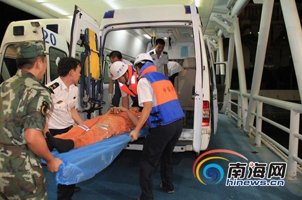 8月21日凌晨2点45分左右,在“海巡11302”的全程护航下,“FU HAI”轮顺利靠泊凤凰岛国际邮轮码头。此时,三亚市急救中心的救护车已经在码头等候,两名伤员从船上转移至救护车上,迅速送往医院进行抢救,另一名船员经医护人员确认已经死亡。