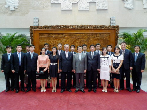中新网8月28日电 据外交部网站消息,今日,外交部副部长刘振民会见以朝鲜外务省中国局副局长金明日为团长的朝鲜青年外交官代表团一行。
