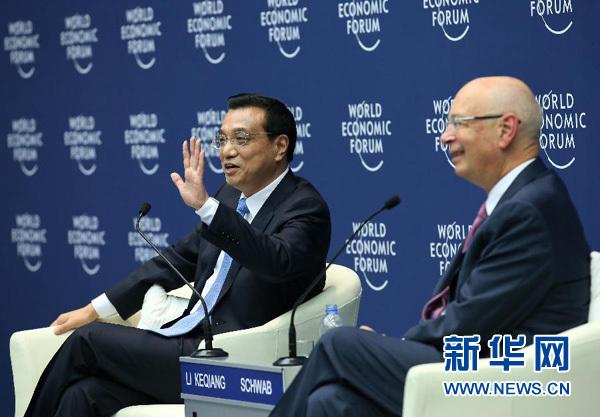 李克强:尊敬的施瓦布主席先生,各位企业家、新闻界的朋友,我很高兴应施瓦布先生的盛情邀请出席世界经济论坛在大连举办的年会。我也很高兴和在座的许多新老朋友们见面,借此机会感谢各位长期以来对中国经济社会发展所倾注的心血、给予的努力。