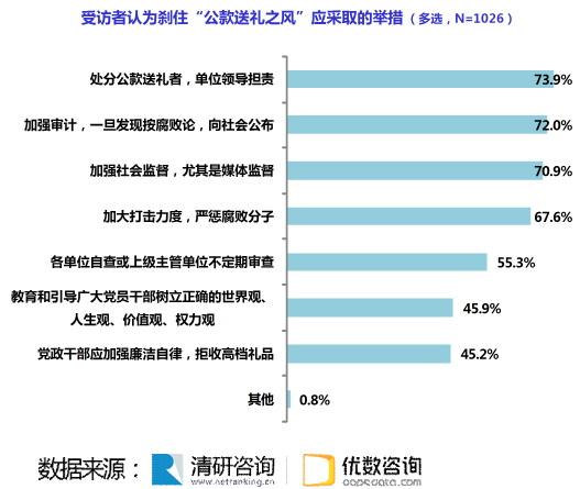 受访者认为刹住“公款送礼之风”应采取的举措 (多选,N=1026)