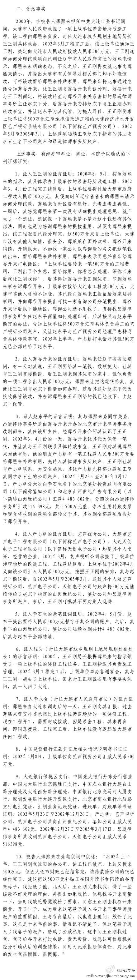 上一页 薄熙来受贿、贪污、滥用职权案判决书全文(5) 查看下一页