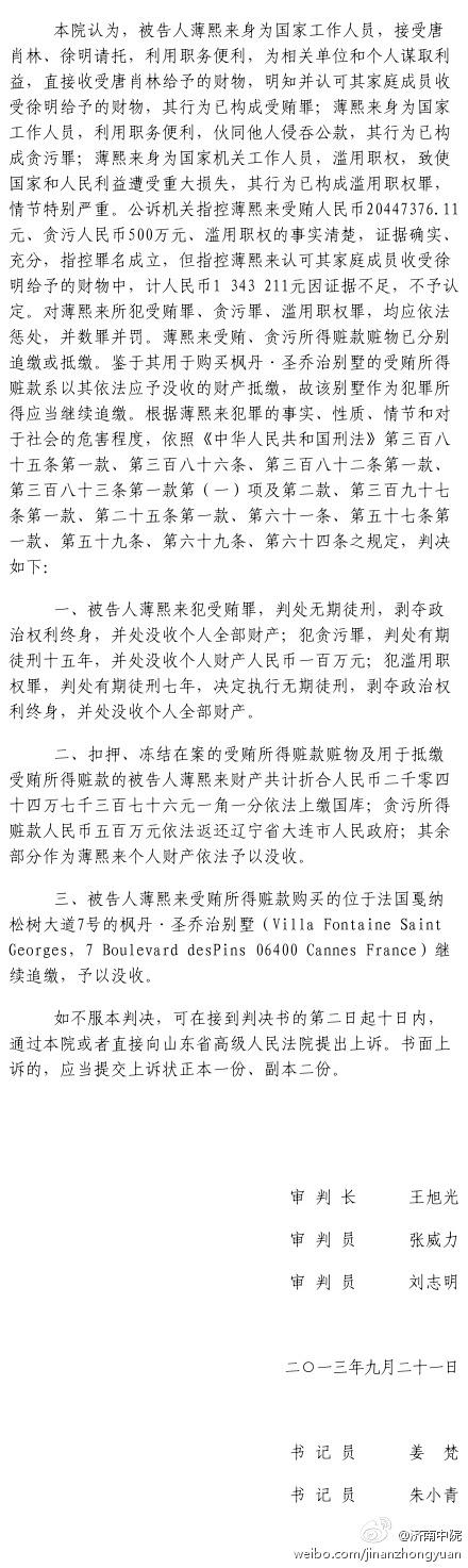 上一页 薄熙来受贿、贪污、滥用职权案判决书全文(9)
