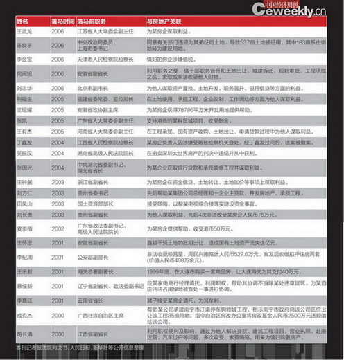 这些落马高官目前大多正在接受调查,而在公开信息或是媒体报道中,已有不少信息表明,他们中的大部分涉及房地产。