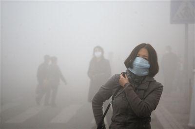 哈尔滨等东北城市出现严重雾霾 有市民戴三个口罩