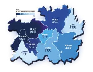吴战平表示,这就像国标中气温低于5℃的天数超过90天时,必须要采暖一样。在贵州,当人体舒适度持续稳定低于45的天数大于或等于90天时,则该区域适合城市集中供暖。这种综合了湿度和温度来划定的舒适度来作为标准更适合贵州。