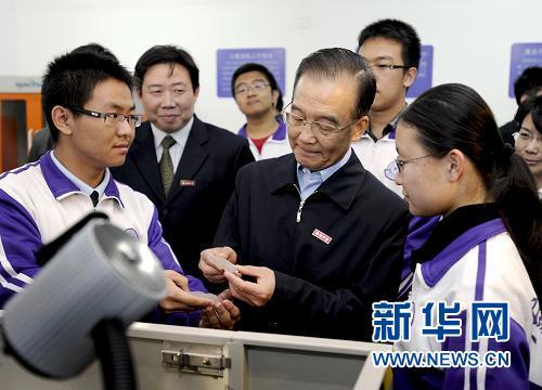 这是温家宝在南开中学工艺坊参观。新华社记者 马占成 摄