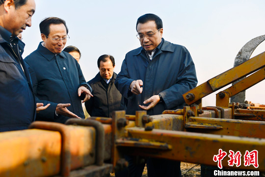 中新网抚远11月5日电 (记者 郭金超)5日一早,国务院总理李克强到黑龙江抚远县红旗村查看农田深松情况。地里两台拖拉机正在作业,李克强踩着湿滑的田垄,登上驾驶室,拽着扶手与农机手攀谈,询问购机补贴,与他们一起细算成本账收入账。李克强说,深松土地节肥保水抗旱抗涝,相当于土地轮休,是个好办法。