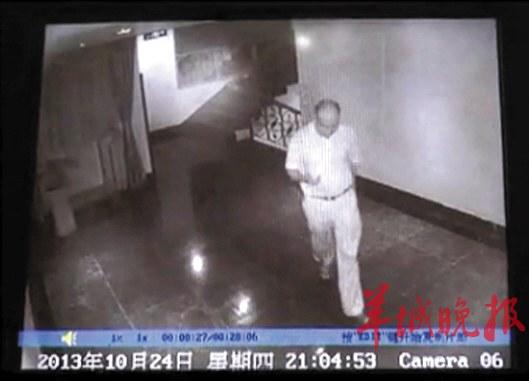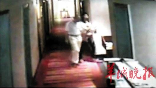 根据网曝的视频显示:10月24日21时02分11秒,一位约50岁的光头男子出现在金海花园宾馆前台,办理开房手续;21时02分34秒,男子取卡上楼。21时04分54秒,男子与另一名年轻女性出现在2楼走廊上,先后进入215房间。约一个小时后,22时10分35秒,男子与女子从215房间一齐出房,下楼。