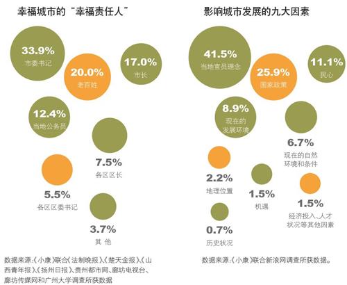 如果把市委书记和市长获得的票数相加,那么总共有五成公众倾向于:建设幸福城市取决于市领导。