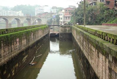 四川自贡被堵闸道7日或可通航 沉船前部露出水面