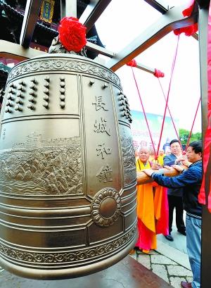 随科考队远征南极的“长城和钟”高1.8米、直径1.2米,重达1.6吨,钟身分别镌刻枫桥、寒山寺山门、嘉峪关和山海关缩略图。新华社发