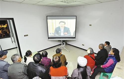 十一月十二日,南岸区南湖社区,居民正在收看十八届三中全会公报。 记者 梅垠 实习生 马多 摄