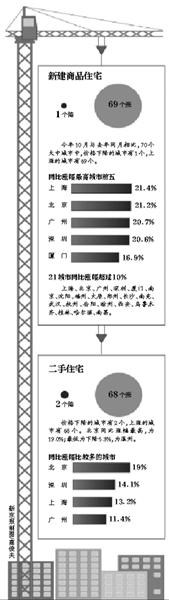 新京报讯 (记者蒋彦鑫)10月,全国70个大中城市新建商品住宅价格从同比来看,北京、上海、广州、深圳四个一线城市延续了上月涨幅全部超过20%的情况;涨幅超过10%的城市达到21个,比上月增加6个。