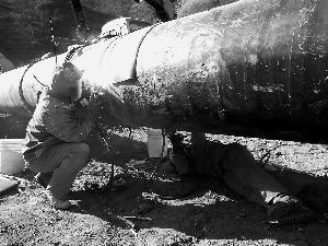 昨天上午,车道峪村南一座140余米高的山峰下,发电机、起重器等设备齐声轰鸣,几十名工人正在光秃秃的树林外忙着焊接一条80米长、直径91.4厘米的天然气管道。自山顶向下,已经敷设好了一条长180米的白色天然气管道,好似一道瀑布从山顶滑落,恰好落在山脚下的清水河畔。“钢制天然气管道外面本来有一层黑色的防腐层,由于管子要上山,我们在防腐层外又包了一层白色的玻璃钢。”承建这段工程的辽河油田油建一公司副经理张国强说。