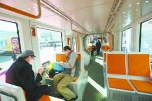 昨天,第五届北京国际城市轨道交通建设运营及装备展览会在中国国际展览中心开幕,展览将持续到22日结束。图为我国首列出口欧洲的100%低地板现代有轨电车正式亮相,吸引了不少观众上车体验。记者 孙戉摄