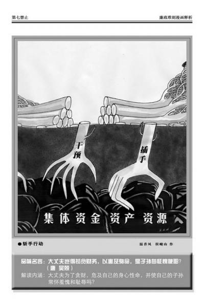 《〈廉政准则〉漫画释析》当年7月28日完稿,8月出版,漫画50幅。2010年初中共中央颁布《中国共产党党员领导干部廉洁从政若干准则》。邱县纪委再次与侯峻山合作,2011年出版了《画说〈廉政准则〉》,漫画52幅。