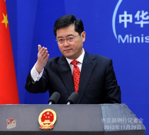 中新网11月29日电 外交部发言人秦刚29日主持例行记者会,就中日防空识别区重叠、欧盟表态、英国夫妇上海被逮捕等答记者问。
