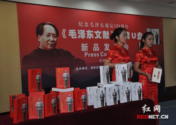 (《毛泽东文献》U盘电子书在长沙首发,电子书的文字内容超过2000万字,还包含大量图片资料,可称之为“口袋里的毛泽东数字图书馆”。)