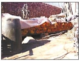 昨日上午,妻子谢玉凤坐在内屋床沿上,照看着孩子们。旧床单看不出颜色,边缘磨出几个大窟窿,被褥也分辨不出颜色。