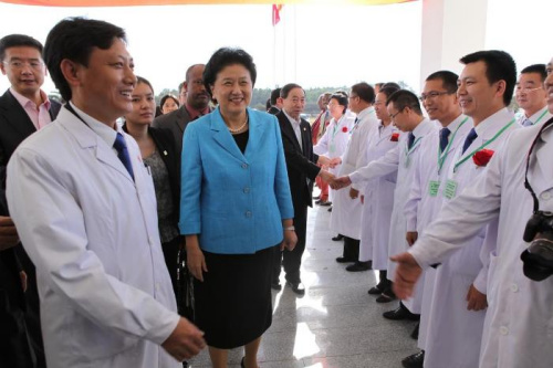 中新网12月10日电 据国家卫生和计划生育委员会网站消息,近日,中共中央政治局委员、国务院副总理刘延东在埃塞俄比亚访问期间,前往中国援建的埃塞俄比亚提露内丝北京医院参观,并看望在这里工作的第17批中国援埃塞俄比亚医疗队。
