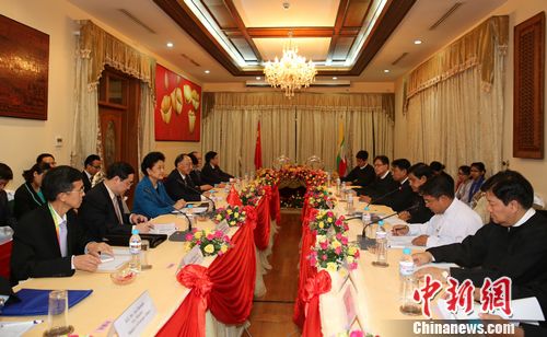 中新社内比都12月10日电 (记者 符永康)当地时间10日晚,刚刚抵达缅甸的中国国务院副总理刘延东在内比都与缅甸副总统年吞举行会谈。双方就加强两国全面战略合作、密切人文交流等深入交换意见。